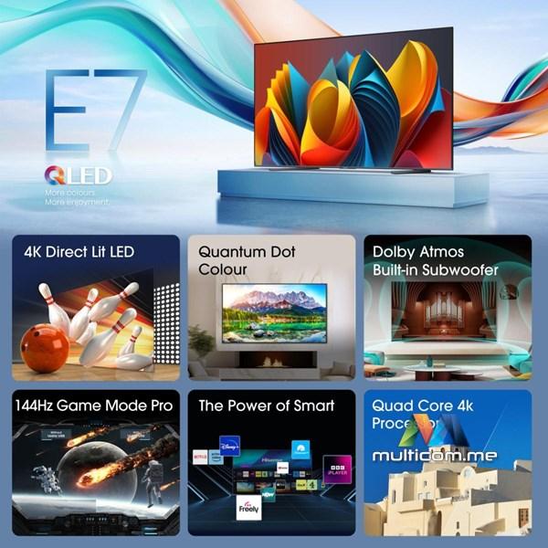 Hisense 100E7NQ smart TV pametni televizor │ 100 inča (254 cm) │ QLED Smart TV │ 4K Ultra HD rezolucija │ Dolby Atmos zvuk │ DTS Virtual X dekodiranje │ VIDAA Smart OS │ Quantum Dot tehnologija