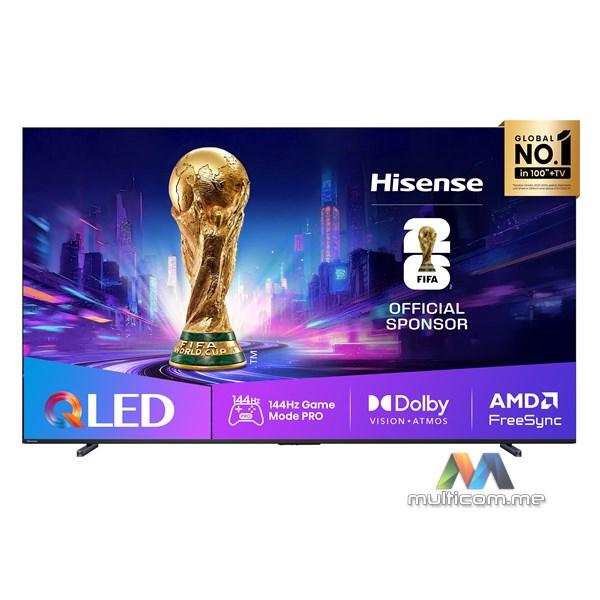 Karakteristike - Energetska klasa: E Ekran - Velicina ekrana: 100 inca (254cm) Rezolucija: 4K Ultra HD (3.840 x 2.160) Tip ekrana: QLED Pozadinsko osvetljenje: Quantum Dot Nativni kontrast: 5.000:1 Osvezavanje: 144Hz Odnos stranica: 16:9 Uglovi gledanja: 178 stepeni horizontalni Ostalo: 4K HDR Immersive,AI Light Sensor,AI Picture Optimisation,AI Smooth Motion,AI Sports Mode,Dolby Vision,Filmmaker Mode,Game Bar,HDR,HDR+,HDR10+ Adaptive,HLG,Infinity Vision,Odziv 6ms,Quantum Dot tehnologija,Wide Color Gamut Video - Digitalni signal: DVB-C,DVB-S,DVB-S2,DVB-T,DVB-T2 Formati: AVC,AVI,FLV,HEVC,MKV,MOV,MP4,MPEG,TS,WebM,WMV Tehnologije: 4K Upscaling Audio - Formati: AAC,FLAC,MP3,MPEG,OPUS,WAV,WMA Snaga zvucnika: 2x 15W + 20W Tehnologije: Dolby Atmos,DTS Virtual:X,EzPlay,Hi-Concerto,Korisnicki ekvilajzer,TV rezim Prikljucci / Slotovi - Antenski: 2x RF tip HDMI ulaz: 3 Analogni video ulazi: AV Audio izlaz: 1x S/PDIF,Izlaz za slušalice Audio ulaz: 1 x audio (L/D) ulaz Ukupno USB prikljucaka: 2 USB: 1x USB 2.0,1x USB 3.0 Ostali prikljucci/Slotovi: CI +,HDMI 2.1 sa eARC, VRR i ALLM,RJ-45 (Ethernet LAN),Senzor svetla Dodatne funkcije - Wi-Fi: Da Bluetooth: Da Opis bezicne veze: IEEE 802.11 a/b/g/n/ac-2.4G,5G Operativni sistem: VIDAA Smart OS Dodatne funkcije: Airplay 2 support Podrzane tehnologije: 3D digitalni filter,4K Upscaling,AI Smooth Motion,Game Mode Pro,MEMC tehnologija,MPEG smanjenje šuma,QLED Colour,Share to TV,Smanjenje šuma slike,VRR Technology: FreeSync Premium Upravljanje: Izdavanje glasovnih komandi Aplikacije: Apple Airplay 2 Fizicke karakteristike - Montiranje na zid: VESA 800mm x 400mm Masa: 52kg Boja: Crna Dimenzije: 2.229mm x 1.317mm x 480mm Pakovanje: Daljinski upravljac,Korisnicka dokumentacija,Naponski kabl,Postolje Reklamacioni period - Reklamacioni period: 24 meseca Napomena: Pravo na 5 godina garancije ostvaruje se iskljucivo registracijom na sajtu: https://cc.hisense.com/rs/produzena-garancija