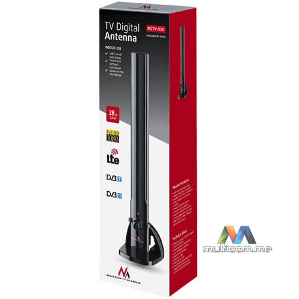 Maclean MCTV-930 LTE aktivna DVB-T unutrašnja antena │ Pojačanje (uhf): 28 dB │ Pojačanje (vhf): 26 dB │ Sistem formata digitalnog signala: DVB-T, DVB-T2, ATSC, DMB-T/H │ Impedansa: 75 Ω │ Opseg prijema (uhf): 470 - 790 MHz │ Opseg prijema (vhf): 87.5 - 230 MHz